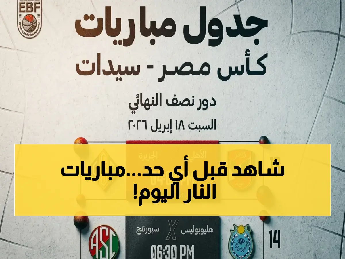 - نهائي كأس مصر لكرة السلة للسيدات: يستضيف فريق سيدات الأهلي سبورتنج في نهائي الكأس على صالة حسن مصطفى في الساعة 6:30 مساءً، وتذاع المباراة عبر قناة أون سبورت.