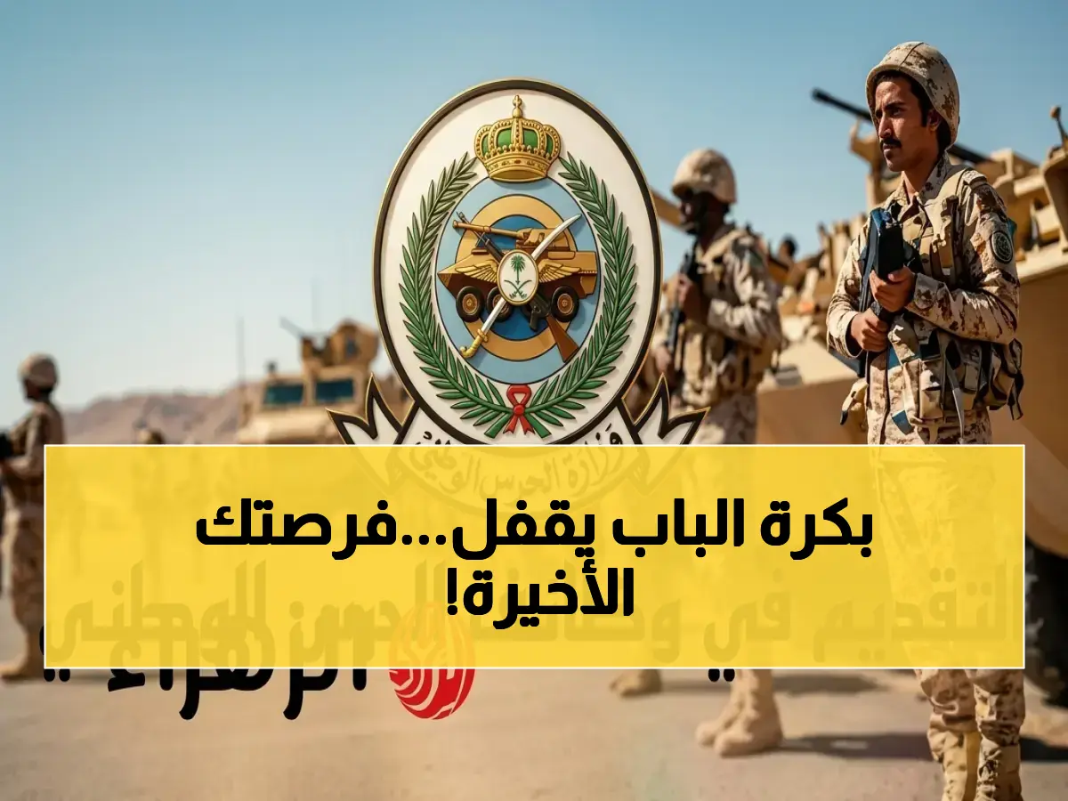 تضع وزارة الحرس الوطني السعودي فرصةً تاريخية للالتحاق بالخدمة العسكرية أمام الشباب السعودي، لكنها تمنحهم خمسة أيام فقط للإسراع بالتسجيل، إذ يبدأ التقديم يوم الأحد 9/11/1447هـ وينتهي يوم الخميس 13/11/1447هـ.