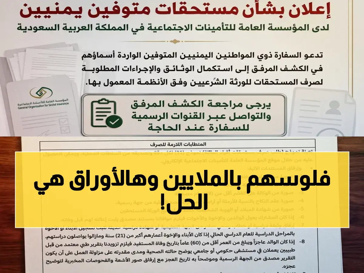 عاجل: ذوو اليمنيين المتوفين في السعودية... المستحقات المالية تتجاوز المليونيات ولا تنتظر إلا هذه الوثائق الثلاث!