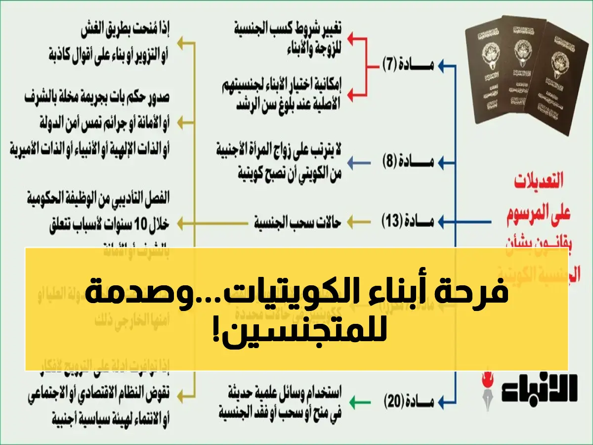 كشف مرسوم قانوني جديد في الكويت عن صلاحيات حازمة تسمح بسحب الجنسية "فوراً" من أي متجنس يختار الحصول على جنسية أجنبية أخرى، مع فقدان زوجته وأبنائه للجنسية بالتبعية. هذا التفصيل يعد جزءاً من تعديلات تاريخية أُقرت في قانون الجنسية الكويتية الجديد لعام 2026، والتي نشرت في الجريدة الرسمية "كويت اليوم" بتاريخ 13 أبريل.
