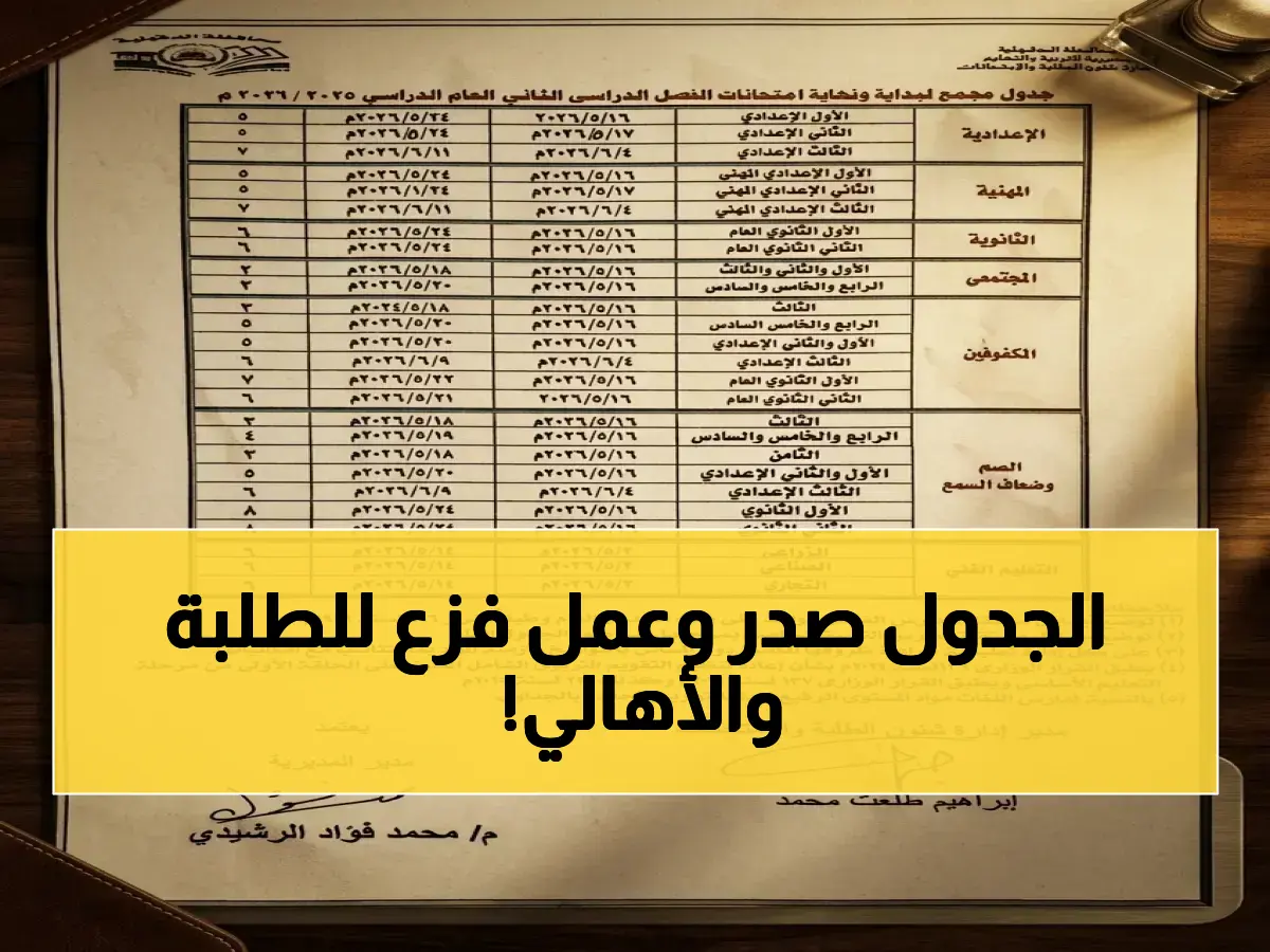 ويحظى جدول الامتحانات باهتمام كبير من الطلاب وأولياء الأمور، نظراً لأنه يمثل المرحلة الفاصلة التي يتم فيها تحديد المسار التعليمي للطالب، سواء في التعليم الثانوي العام أو الفني. كما يساعد الإعلان المبكر عنه في منح الطلاب فرصة لتنظيم الوقت ووضع خطة مراجعة مناسبة لكل مادة.
